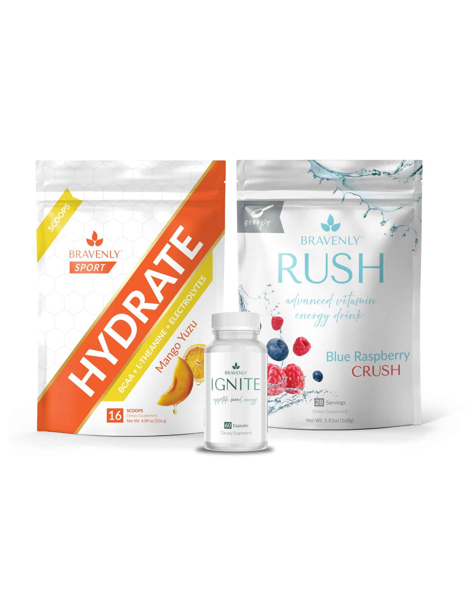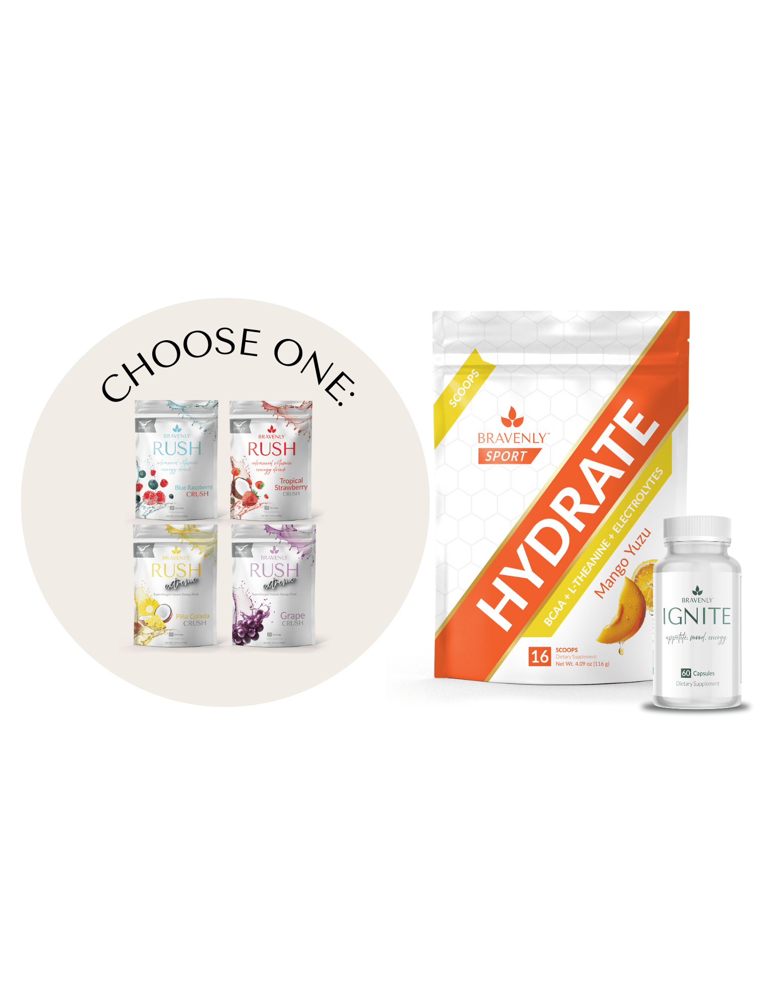 Included: HYDRATE – Mango Yuzu, IGNITE, and your choice of RUSH or RUSH EXTREME